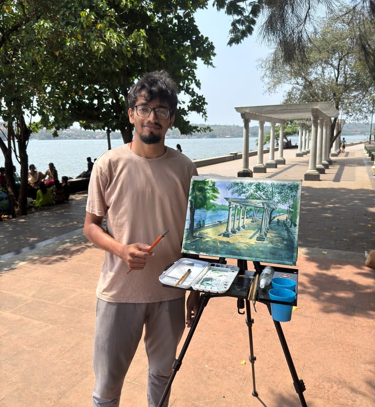 I’m Ambar Naik, an artist from Goa and a graduate of the Goa College of Art with a Bachelor’s degree in Fine Arts. Art for me is more than just expression—it’s a way to transform spaces, spark emotions, and tell stories that words often cannot.